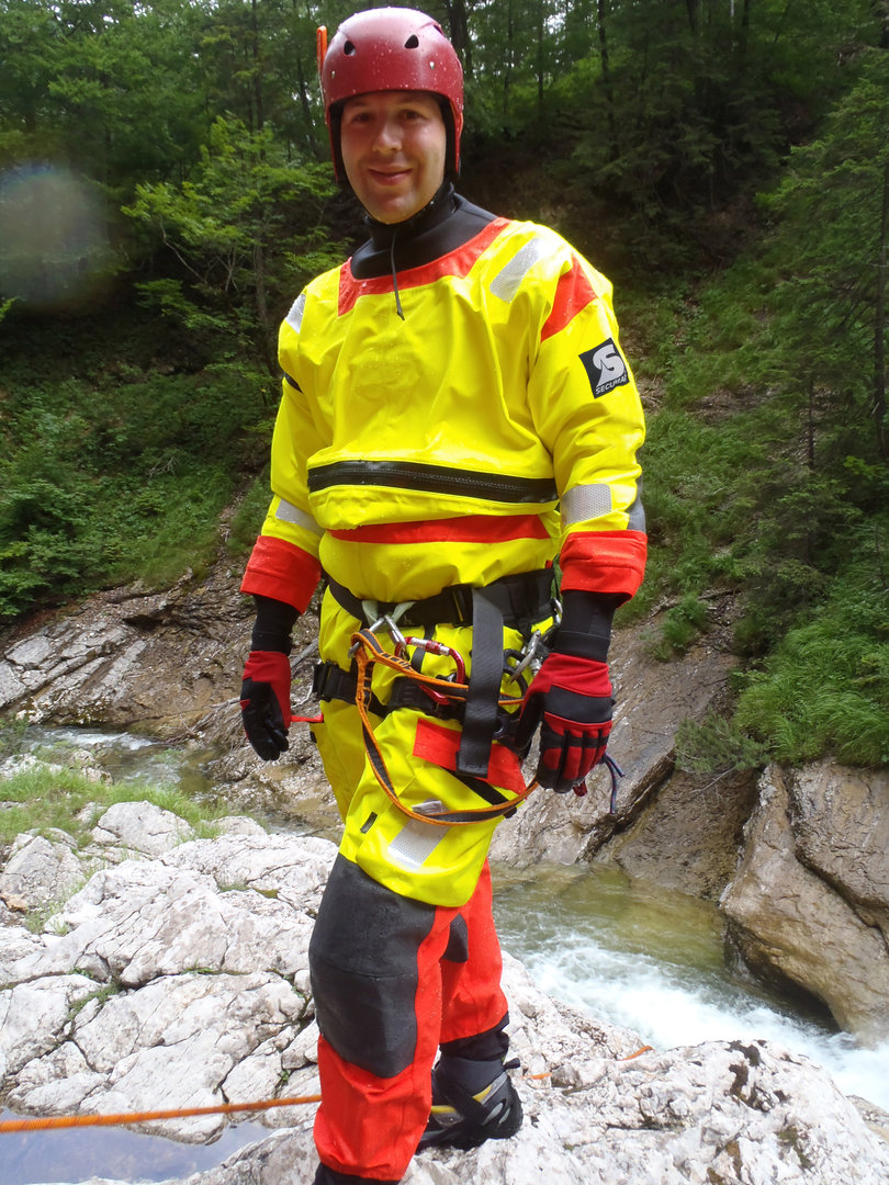 Vesitiivis ja hengittävä Contra 140 -puku on lisäksi vahvistettu kulumista vastaan kyynärpäistä, polvista ja takamuksesta.