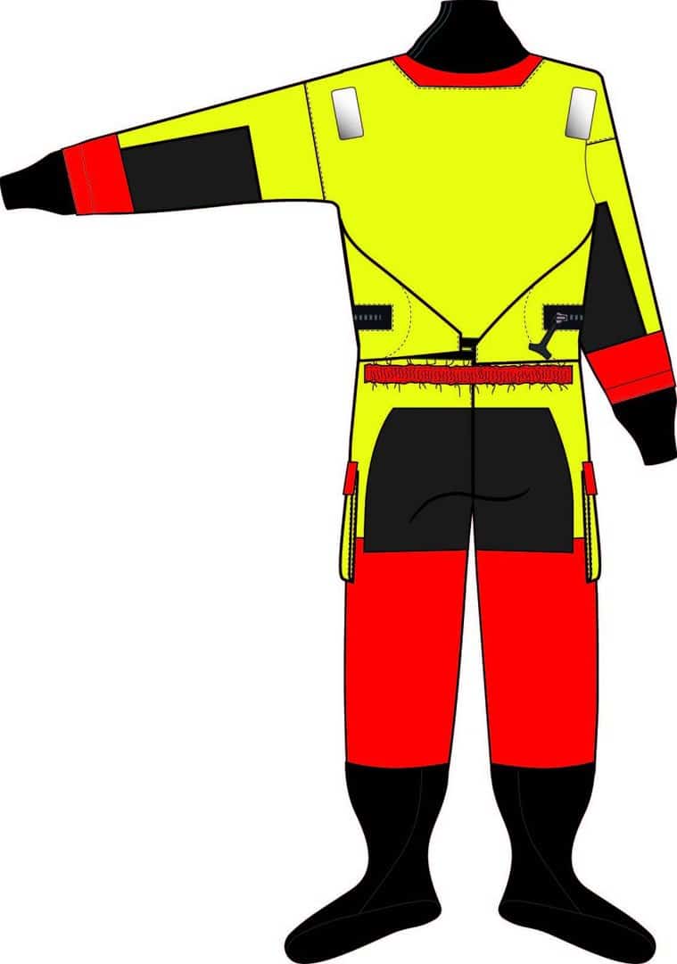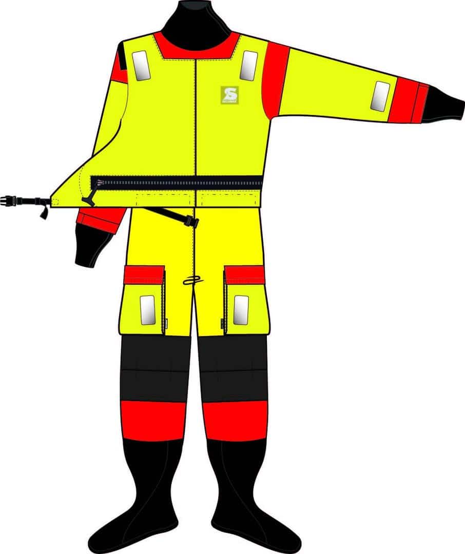 Puvun hyvän näkyvyyden takaa huonoissakin olosuhteissa neonkeltainen kolmikerroksinen Gore-Tex -laminaatti sekä SOLAS-hyväksytyt heijastimet.