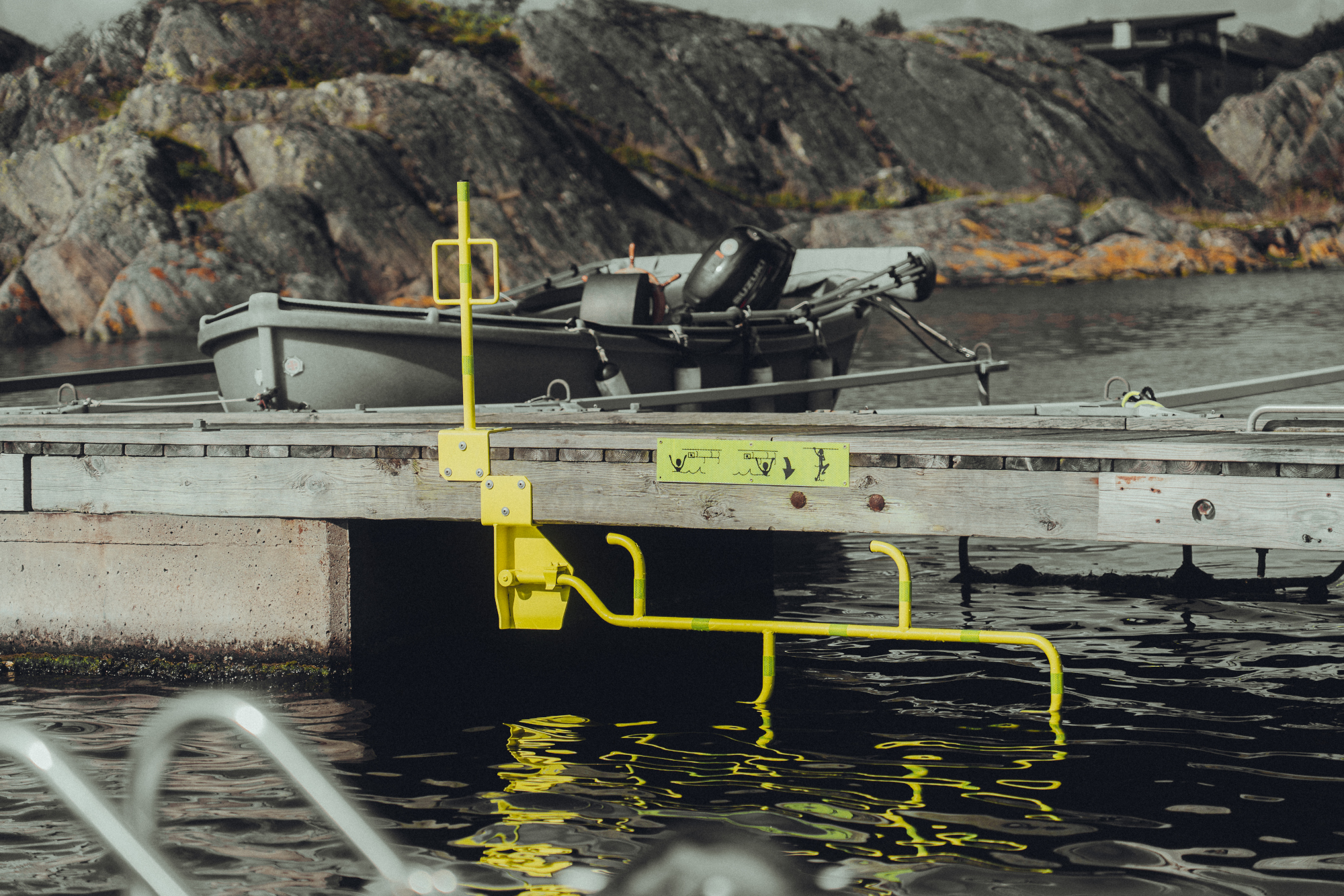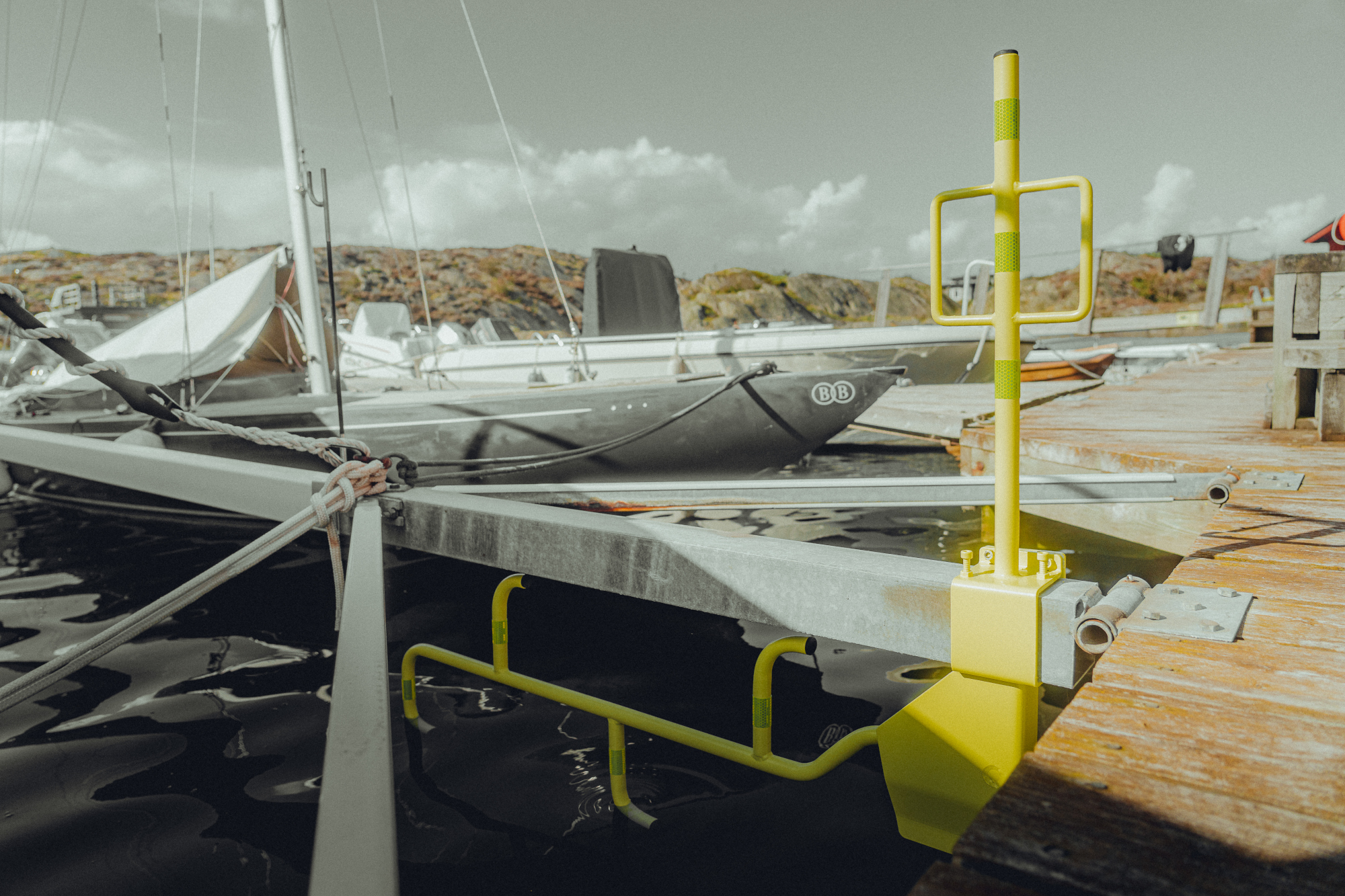 Rescue Life 247 -tuotesarjaan kuuluva taittotikas on helppo kiinnittää ponttoonilaituriin ylä- tai alakiinnityksellä sekä Y-puomiin.