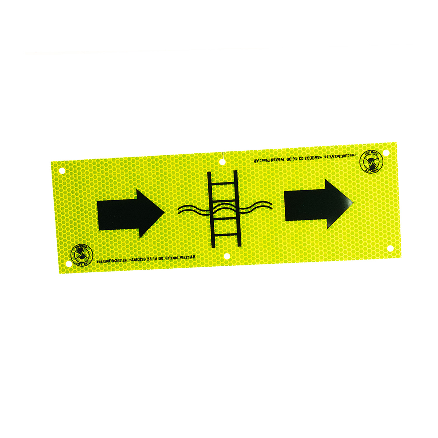 Tikkaan viereen kannattaa lisätä heijastava “pelastustikas” kilpi, sekä hieman kauemmas nuolet kertomaan pelastustikkaiden sijainnista.