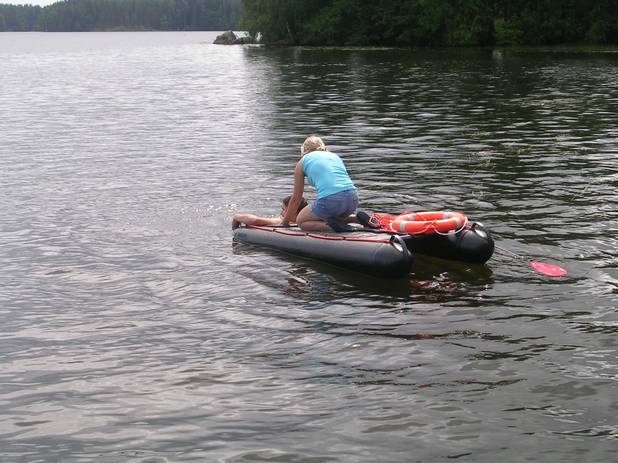 Pelastuslautta, joka on helppo sijoittaa erityisen riskialttiisiin paikkoihin. Katamaraanin runko tekee siitä nopean ja erittäin vakaan vedessä, ja siinä on kahvat ja jalkatuki, jotka helpottavat hädässä olevan henkilön pelastamista. Se, että melot lautalla aina hädässä olevaa henkilöä kohti, lisää nopean pelastuksen mahdollisuuksia ja uhri on kokoajan pelastajan näköpiirissä.