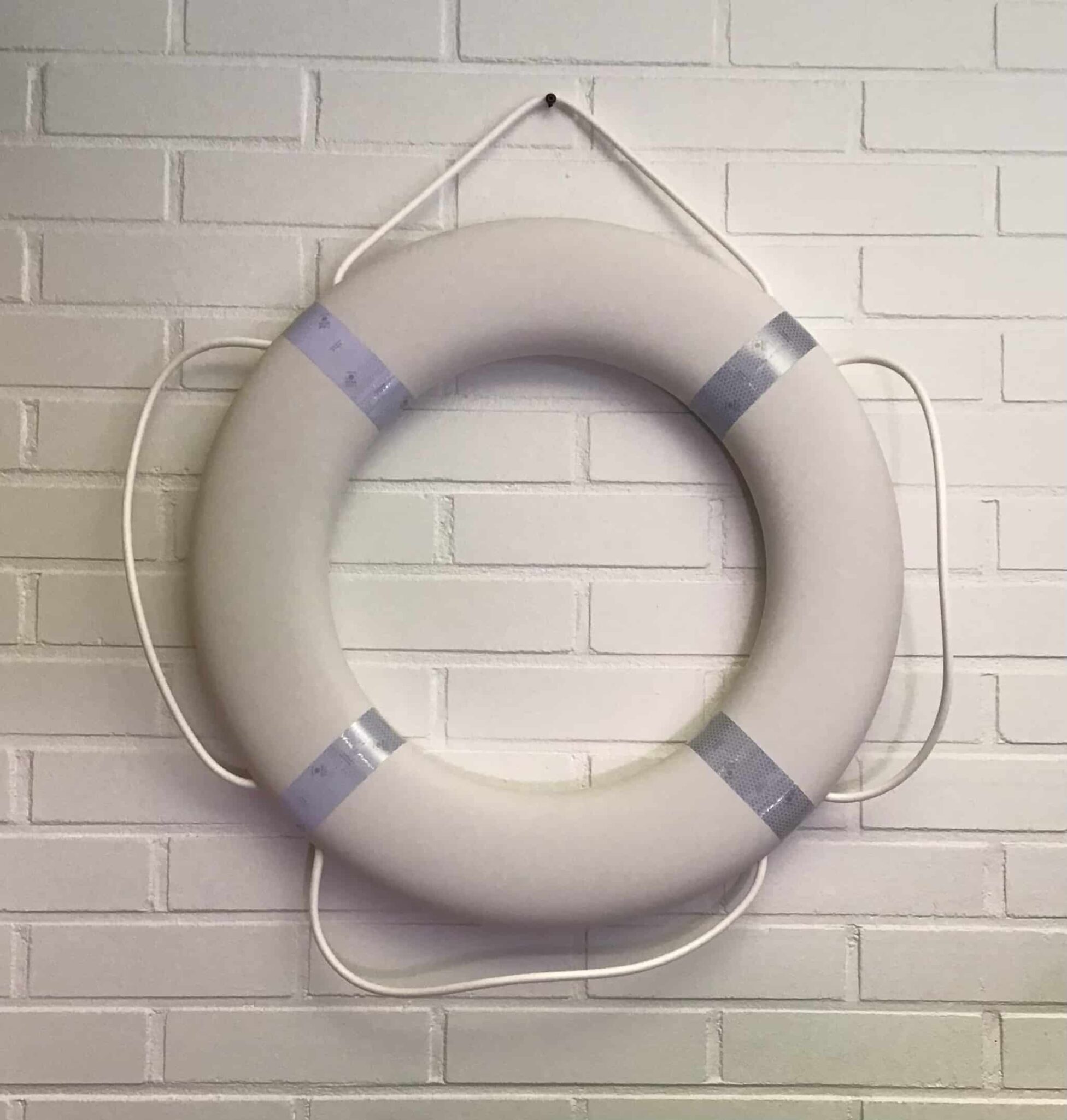 Valkoinen pelastusrengas rantapelastuskäyttöön.