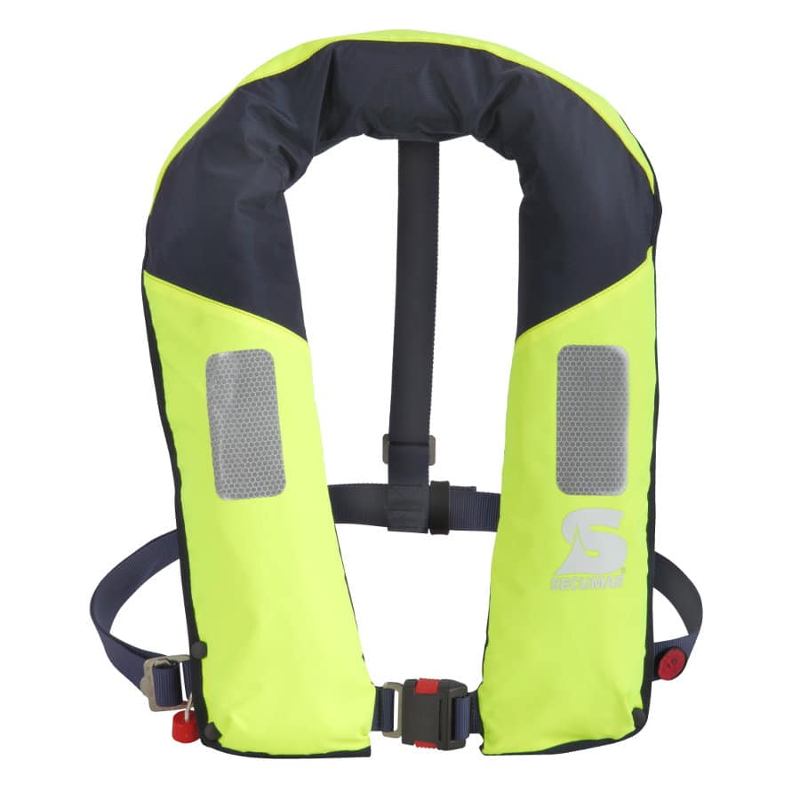 Automaattilaukaisulla varustettu Secumar ilmatäytteinen pelastusliivi, jossa on erittäin hyvin kulutusta kestävä Neon-päällinen.
