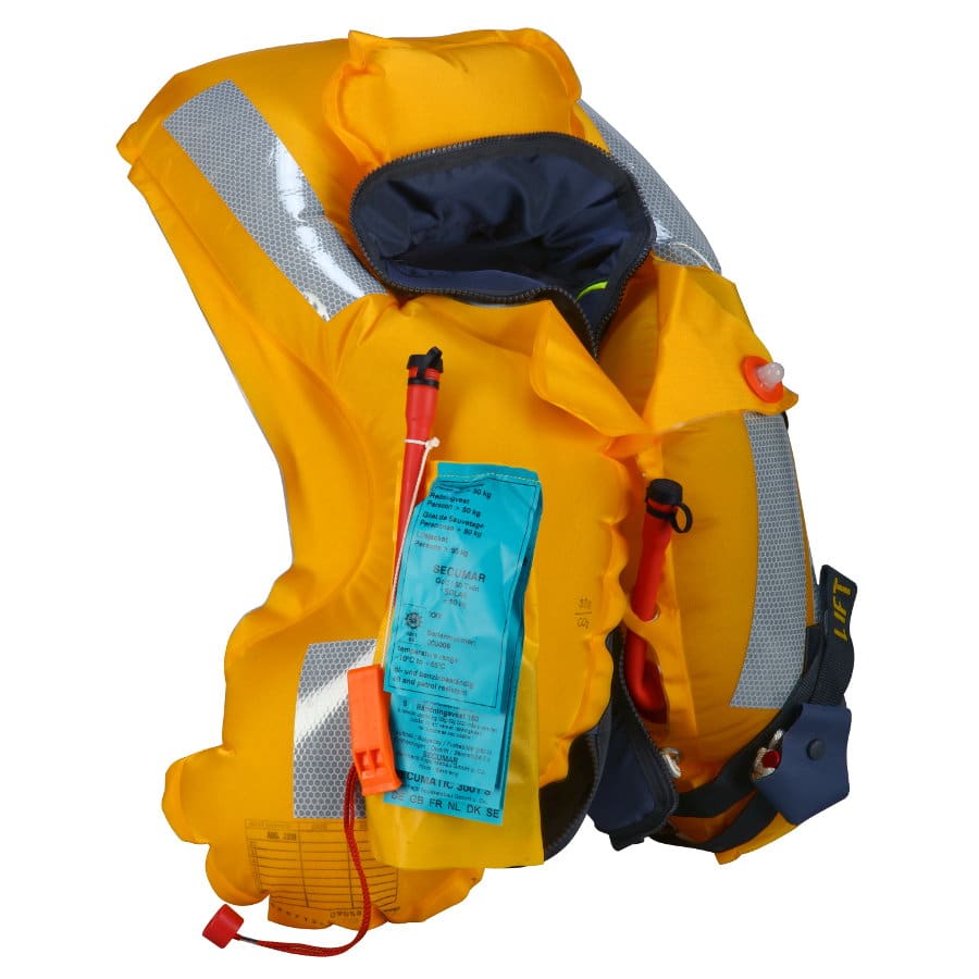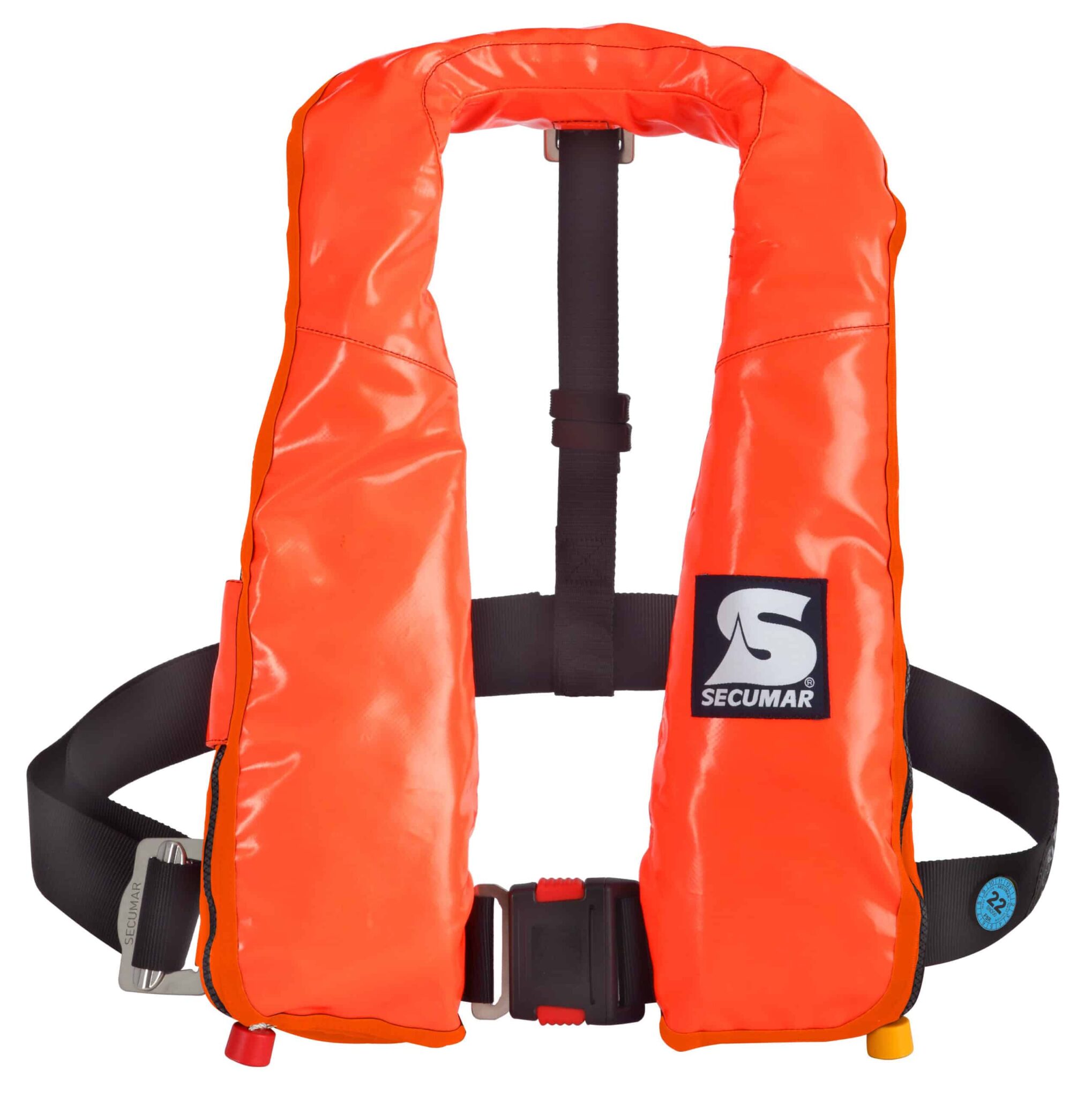 Secumar, MED / SOLAS automaattinen ilmatäytteinen kaksikammioinen pelastusliivi SPR-suojakuorella, jonka toinen kammio on manuaalikäyttöinen. Solas liiveissä on aina pelastusliivivalo.