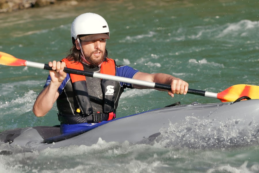 Aikuisten kevyt ja pienikokoinen ilmatäytteinen pelastusliivi melojille ja soutajille.